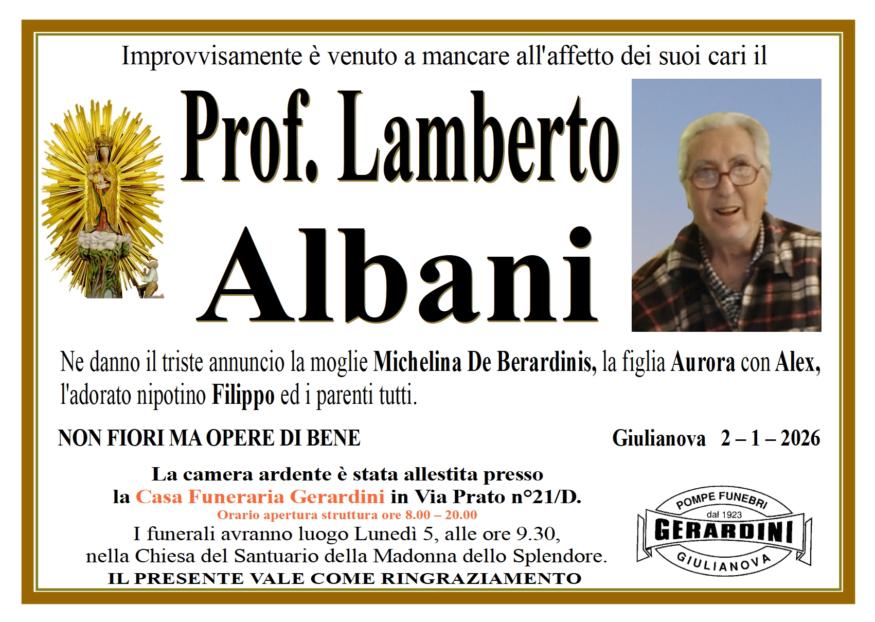 Invia le condoglianze alla Famiglia