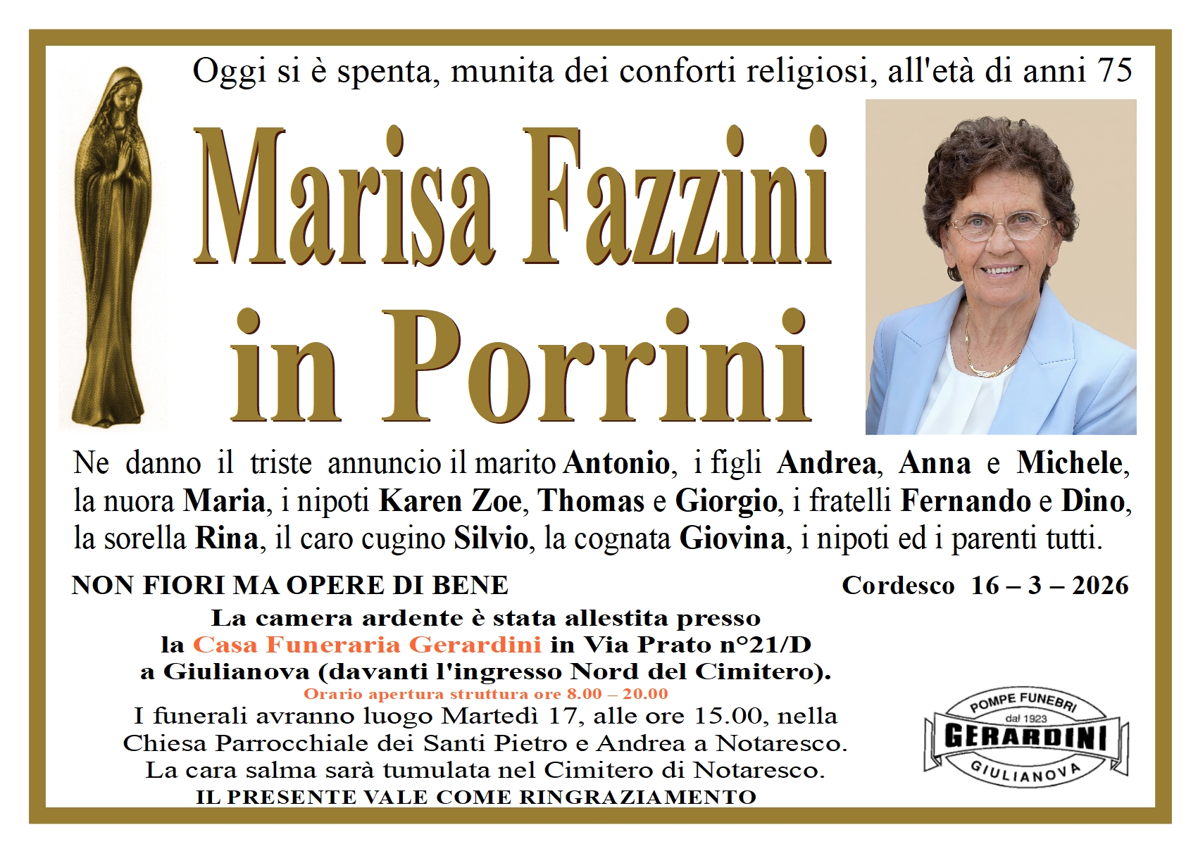 Invia le condoglianze alla Famiglia
